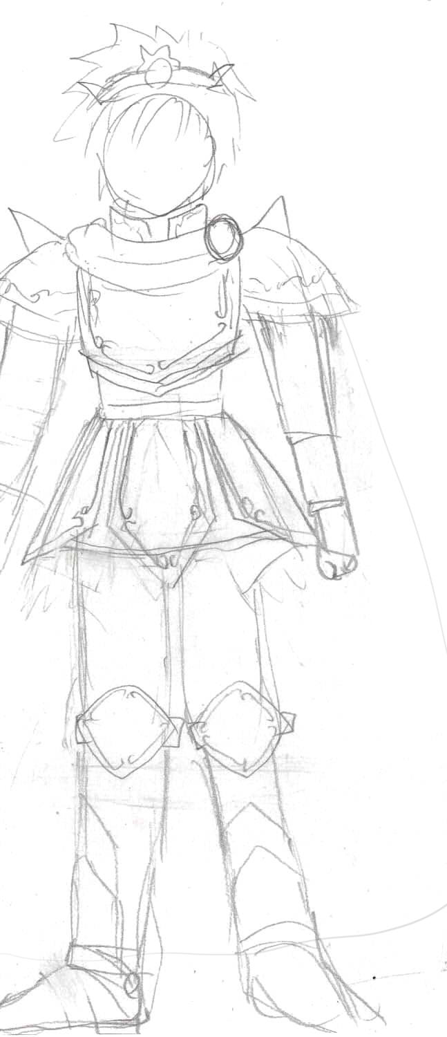 顔も描いてないラフ画ですが、エリアスにまともな鎧を着せたいと思ってデザインしたもの。
