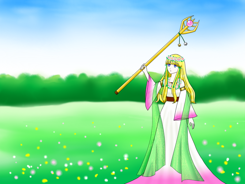 衣装デザインは、ギリシャ巫女やケルト巫女、「西洋コスチューム大全」などを見て自分なりに構成。