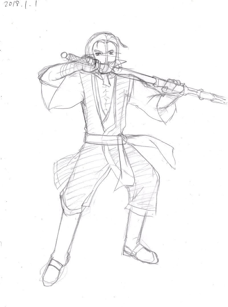 「闘う! 西洋&ファンタジー武器」のイラストを一日一枚(ポーズ集として使える本です)。かなり前に練習として始めたのですが、しばらく中断していました。