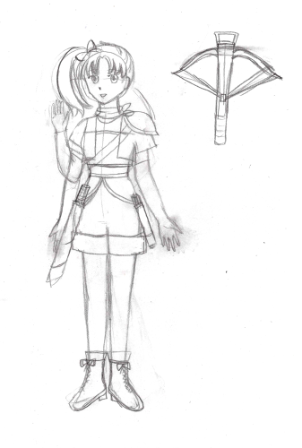 サブキャラの一人「ティナ(レンジャー少女)」のラフ画です。