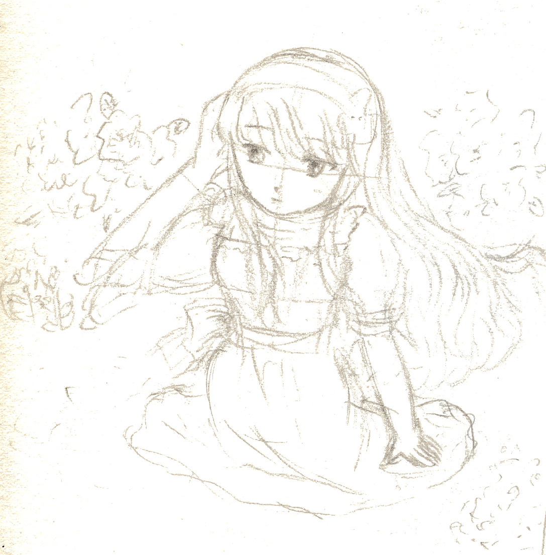 最初に描いたレーネ(主人公)絵。日付は約5年前。