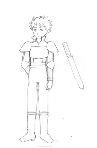 サブキャラ3人目、冒険者3人組の最後の一人、レオンの線画が完成しました。